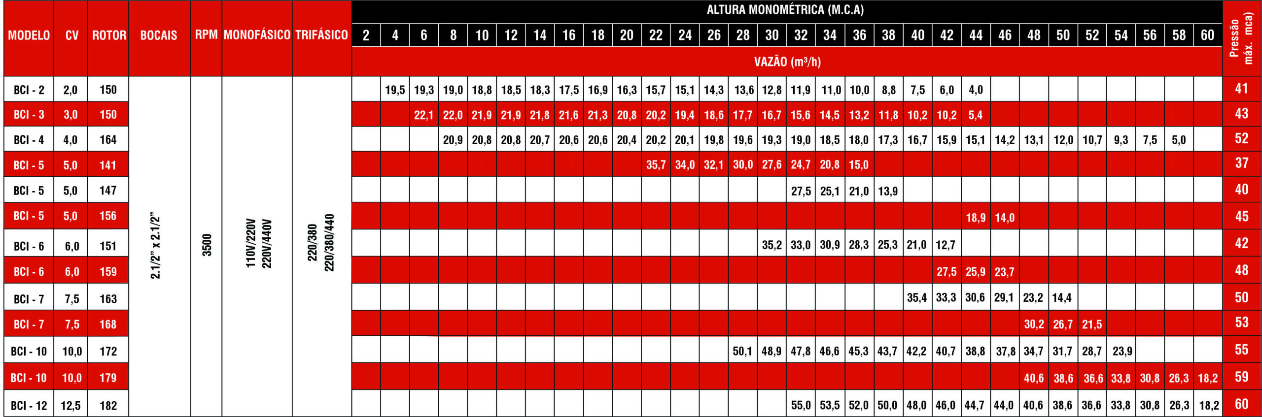 • Vazão máxima: 140 m3/h